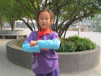 我还在学校健美操社团的预备社团当队长,除了在学校参加训练,回到家中我也会认真练习,一遍一遍地坚持把每一个动作做到位,一丝不苟。在比赛前的那些日子里,我每天都会在课间带着队友在楼道里练习,耐心的帮队友纠正错误的动作,终于在2012年第二届北京市体育传统项目健美操比赛中获得少儿一级一等奖的好成绩。现在,我已经是健美操社团的一名正式团员了,我会继续努力、认真的参加训练,争取取得更好的成绩。