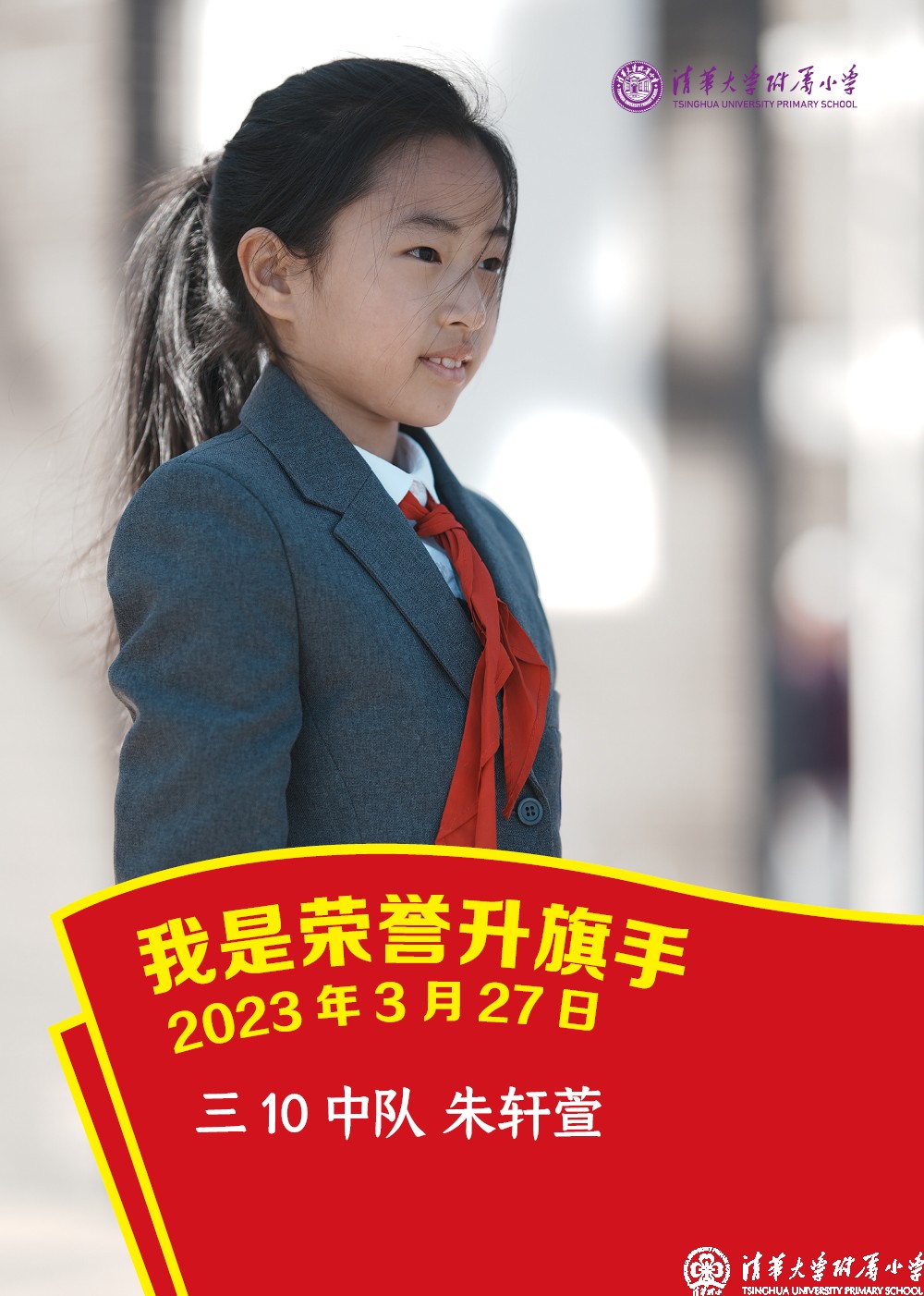 与好习惯为友,过有意义的校园生活。朱轩萱同学每天坚持践行成志少年的“三张名片”,用友善的微笑和标准的鞠躬礼展现对师长的尊敬、对同学的友爱。我们总能看到她,或以标准的站姿和坐姿,或以响亮的问好,展现成志少年的礼仪样态。让我们向她学习,为身边的践行“三张名片”的同学们点赞,争当成志荣誉升旗手!