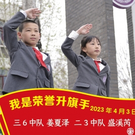 盛溪芮同学随身携带“三张名片”,在路队中,见到老师主动、积极问好,响亮的声音,展现了成志少年的良好风貌。姜夏泽同学作为中队长,认真组织路队,不论是大课间,还是科任课,都能看到他们整齐笔直的队列身影。让我们向他们学习,与好习惯交朋友,争当成志荣誉升旗手!