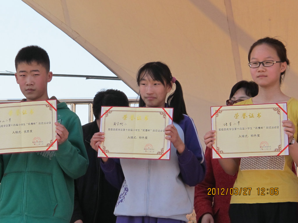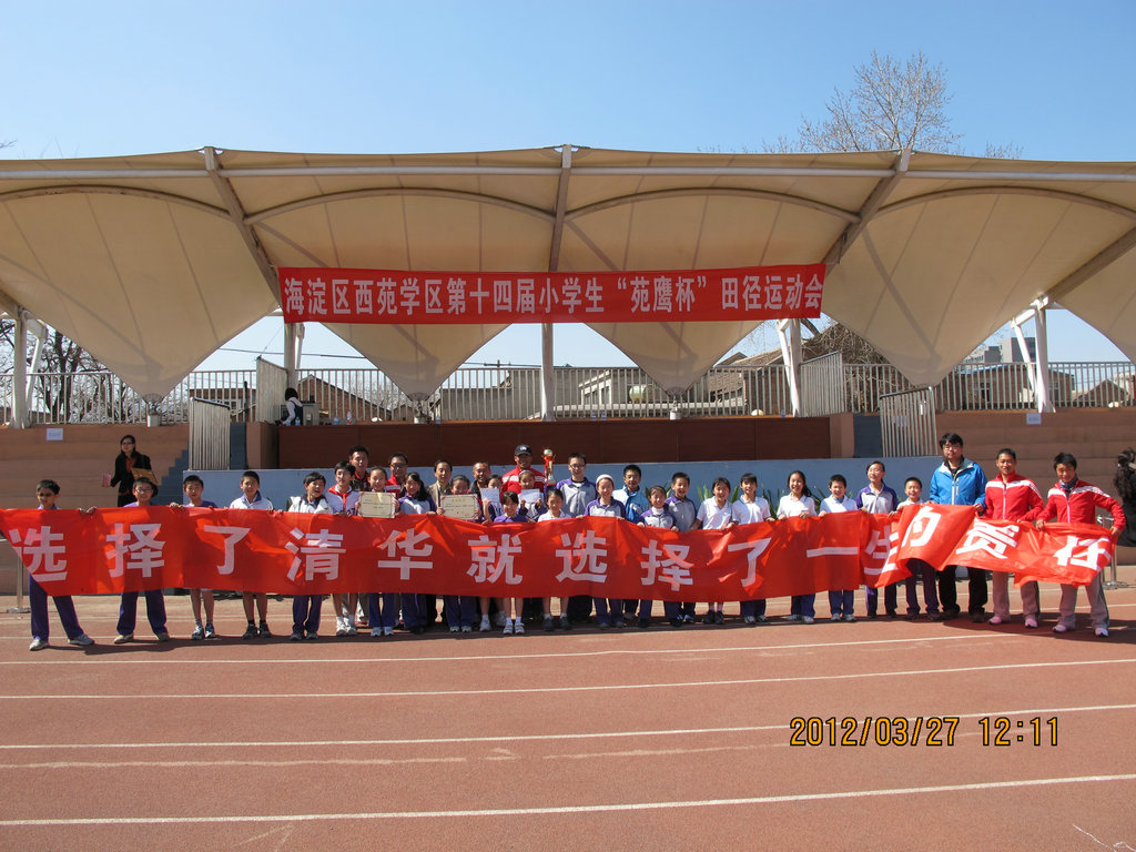 2012年3月27日,我校全体体育教师带领田径队队员及开幕式成员,参加了在中关村二小举行的“西苑学区第十四届小学生‘苑鹰杯’春季田径运动会”。这场运动会是学区认真贯彻落实《中共中央国务院关于加强青少年体育,增强青少年体质的意见》,在新的一年首次举行的大型体育竞赛活动。学区所属11所学校、近600名运动员参加了此次比赛。