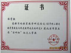 撰写的教育教学研究论文《清华附小课间操质量提高与促进教师成长的研究》获北京市第五届“京研杯”征文三等奖。