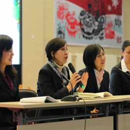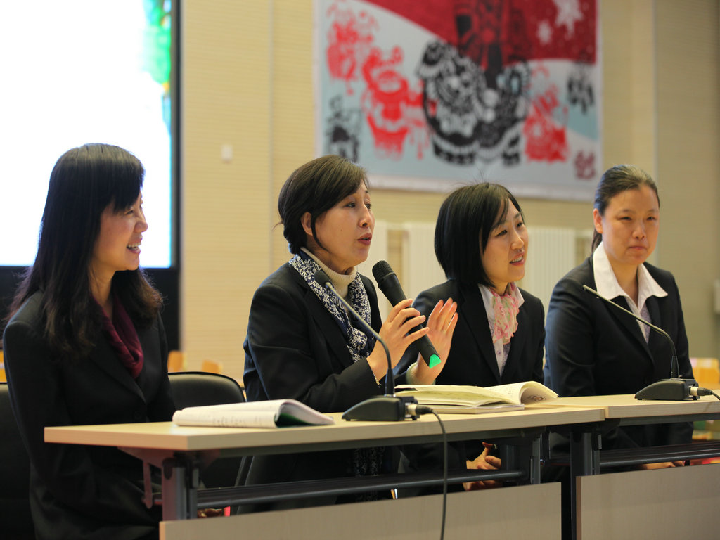 课后,窦桂梅校长、张红老师、王玲湘老师与胡兰老师代表清华附小与现场学习的代表们进行了互动交流。
