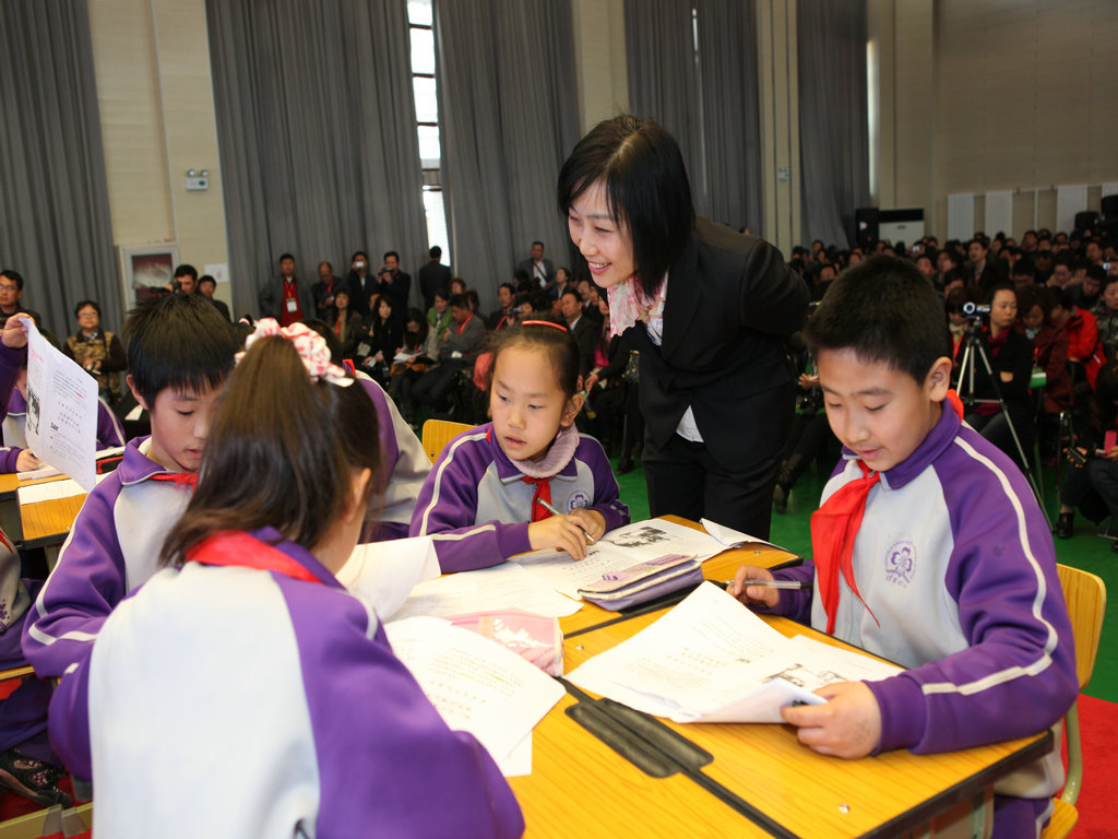 随后,我校著名特级教师王玲湘老师在附小联盛馆为代表们上了两节精彩纷呈的语文课。课上,王老师巧妙运用小组化合作学习方式,将基础与拓展结合的“1+X课程”育人模式理念传达给了与会的代表,扎实的基本功与学生良好学习习惯的展现更是令大家赞不绝口。
