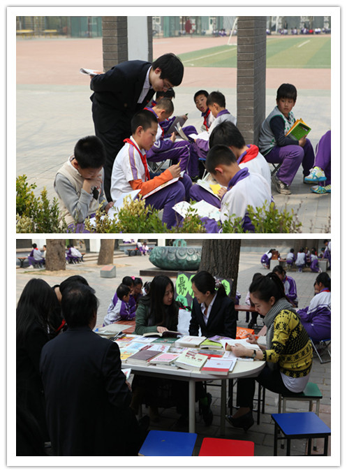 校园里新栽的桃树含苞待放,饱满的花蕊,让人感受到它内在强大的生命力。在春光流溢的校园里,到处都是读书的学生,大手拉着小手,一起分享着书中的知识,共同体会着书中的酸甜苦辣,喜怒哀乐,这不也是一种生命的萌发和生命的张力嘛。春天里的植物是美丽的,因为他让我们感受到生命的气息。阅读书籍的人是最美丽的,因为只有书香能致远。大手拉小手,阅读共分享。手与手的连接,更是心与心的沟通。阅读共分享,分享的不只是书籍,更是快乐,更是成长,更是思想。当所有的师生都沉浸在书籍的熏陶中时,收获的不仅仅是无尽的宝藏。它彰显的是我们对教育理想的不懈追求,更是我们对培养健康、阳光、乐学清华少年的卓越追求。