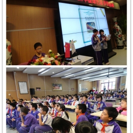 在国旗下讲话中,五(2)班同学和家长一起表演,共同传递了要多读书,常读书的好习惯。无论你多么忙,无论你从事什么工作都要挤时间读书。我校的读书节也进入了年级层面的特色活动。