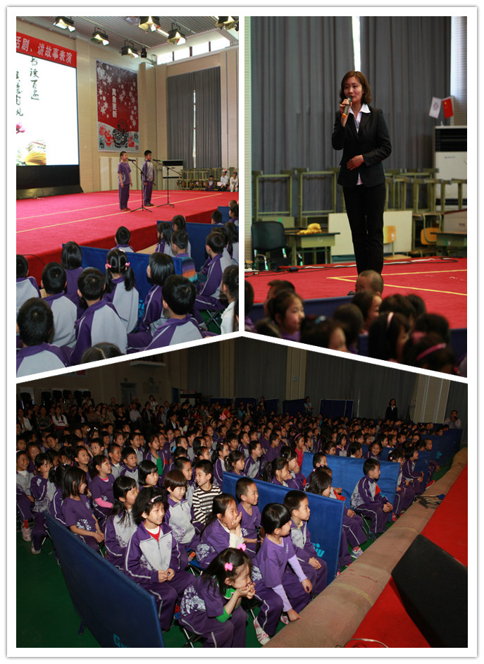 同时,在闻道厅正在进行三年的绿色读书节活动“丁香树下故事汇”暨三年级首届读书故事比赛。三年级各班每班派出一名选手,给大家讲一个选自自己最喜欢的书中的一个故事比如《鲁班的故事》、《去年的树》等并推荐整本书给大家。参赛选手各个讲得有声有色,台下的同学们听得津津有味。