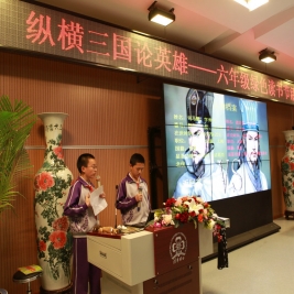 活动中,由每班选出的代表做《三国演义》的读书汇报。学生以小组的形式展开活动,组内分工明确,配合默契,运用舞台剧表演、朗诵等丰富的形式,充分表达自己对人物的理解,诸葛亮、曹操、司马懿、吕布、周瑜等一系列历史人物跃然纸上。