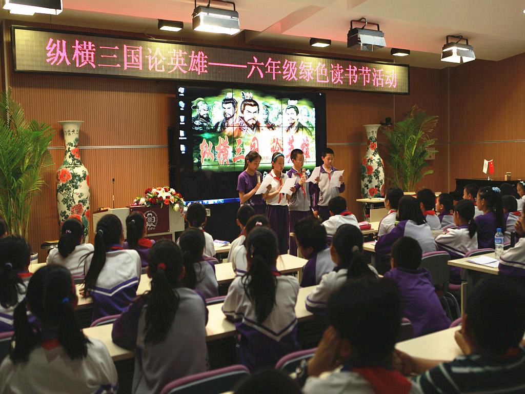 2012年4月27日下午,清华附小六年级全体学生开展了主题为“纵横三国论英雄”的绿色读书节活动。