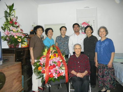 清华附小工会及离退休教师们为龚寿平老师祝贺90岁寿辰。