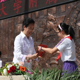 窦校长也为学生们精心准备了最后一课,全体师生认真聆听了窦校长送给他们的话,窦校长带领大家一起回忆:每周一,是六年级的仪仗队同学,完成升国旗仪式,把庄严与神圣,留给了母校;开学典礼时,是六年级的同学,给一年级的孩子戴上小红花,把呵护与友爱留给了母校;在入队仪式上,是六年级学生,为一年级的学生戴上红领巾,把责任与担当,留给了母校;从清华附小毕业,你的简历上永远烙上了清华印,这不是荣耀,而是选择了清华就选择了一生的责任。