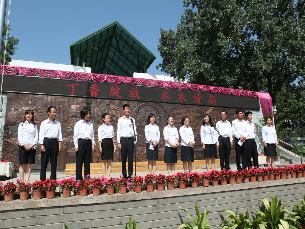 全体毕业班教师和家长代表走上台,为毕业生送去了真挚的祝福,至此,“丁香绽放水木清扬”2012届毕业典礼,到此结束。同学们在宽大的签名墙下,留下了自己的名字,留下了感谢和祝愿。师生们话别、拍照、用点心饮料,场景充满了温馨、感动、不舍。