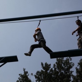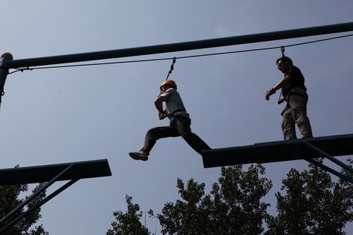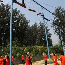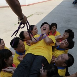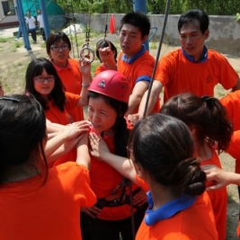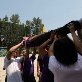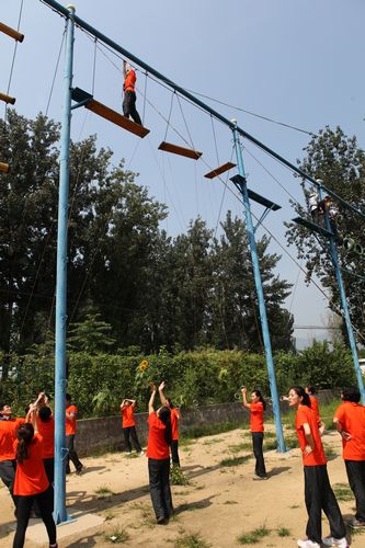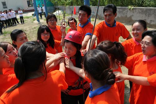 活动首先从建立队伍开始,共分9个支队,每支队伍首先从起队名,设计制作队旗,创造队歌开始。队员们分工明确,合作无间,在确定队名后,擅长设计的老师负责设计旗帜,擅长音乐的老师负责编排队歌,擅长宣传的老师负责创作队伍口号。通过这样的互助合作,9支队伍迅速建立起来,在队伍的号召下,所有人忘记了性别,忘记了年龄,忘记了职务,完全融入到了团队中去。每个支队近乎完美地完成了“过电网”、“背摔”、“高空拓展”、“超音速”、“毕业墙”等项目,通过这些项目的锻造,老师们更加懂得了彼此信任;学会了如何沟通协调,认识到了不断学习不断总结的重要性,领会了团队合作的精髓所在,最后共同意识到了只要一个团队拧成一股绳,就没有过不去的坎。活动达到了预期的目标,从头到尾都体现出了一种令人感动的团队精神。一个富有责任感、信任感、协作能力、学习能力的团队,一个善于超越梦想的团队就此诞生。