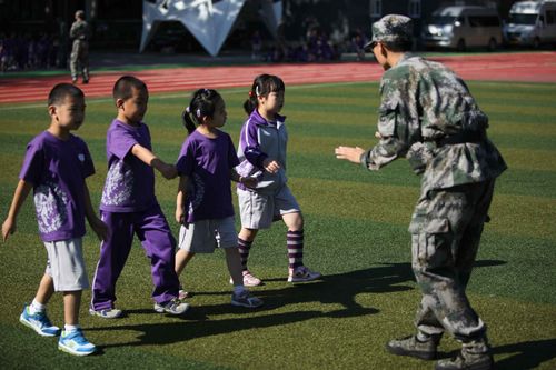 本年度军训从9月3日到9月7日,为期5天。1-4年级学生在清华附小校园参加军训,5-6年级学生则前往南口军训基地开展军训。军训期间,根据不同的年段开设了不同的训练科目。如一年级的同学需听懂指令和口令,高年级的同学则要学会正步走等。