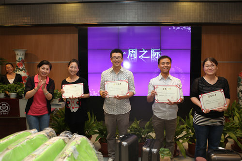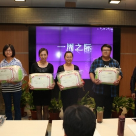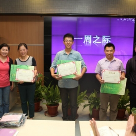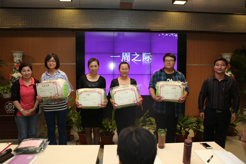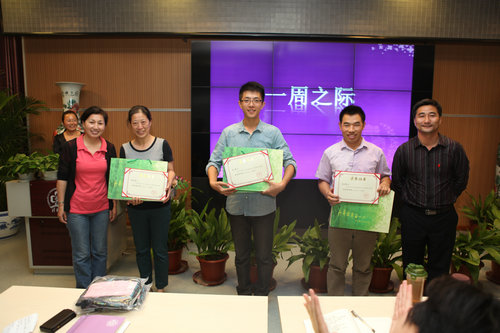 获得“最佳表现”奖的青年教师,杨晓莲、李丽娜、左起第三位王峰、梁营章。