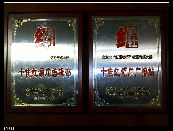 2012年10月12日,为庆祝少先队建队63周年,共青团北京市委员会,少先队北京市委员会在北京八一中学举办了“红通社杯”校园传媒大赛颁奖典礼,我校喜获北京市“十佳红领巾广播站”、“十佳红领巾编辑部”两项殊荣。