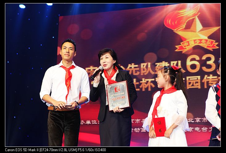 在颁奖典礼上,团中央少年部部长王路为清华附小颁发了荣誉证书和奖牌。我校窦桂梅校长作为获奖代表发言,她指出希望少先队员们用自己的眼睛发现世界,认识世界,努力成为健康、阳光、乐学,拥有中国灵魂、国际视野的少先队员。