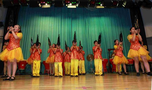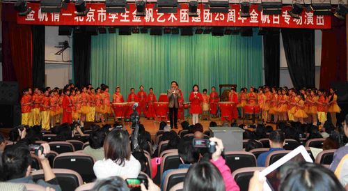 金帆艺术团200余名小演员为大家奉献了一场内容精彩纷呈的演出,民族吹打乐贯穿始终,独唱、合唱点缀其中,悠扬优美的笛子、扬琴、笙,富有情趣的打击乐、鼓乐,博得了台下一阵阵热烈的掌声。尤其是大型吹打合奏《秦王点兵》等反映中国民族特色的曲目,更将演出推向了高潮。