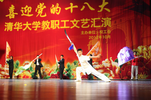 附小教师代表参加清华大学“喜迎党的十八大教职工文艺汇演,”表演《功夫与少林》,博得全场的掌声。