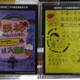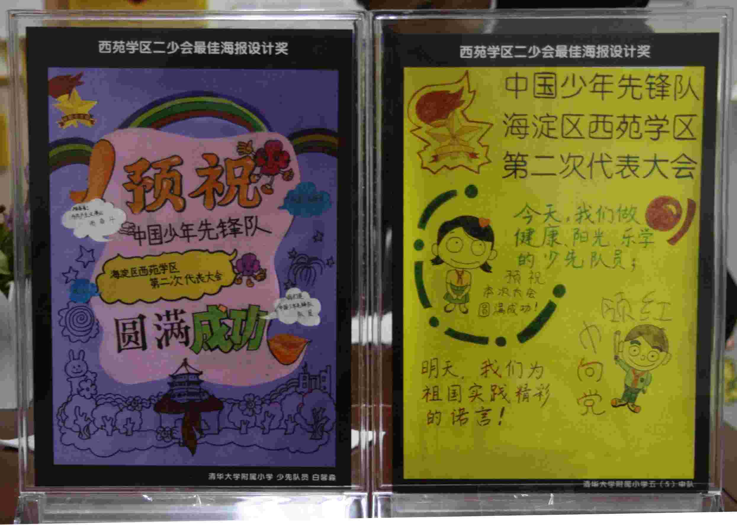 从9月份开始,我校就一直积极参与筹备海淀区西苑学区第二次少代会活动,在海报征集活动中,我校五(5)中队和六(3)中队的白馨淼设计的海报,被评为了西苑学区第二次少代会最佳海报设计奖。
