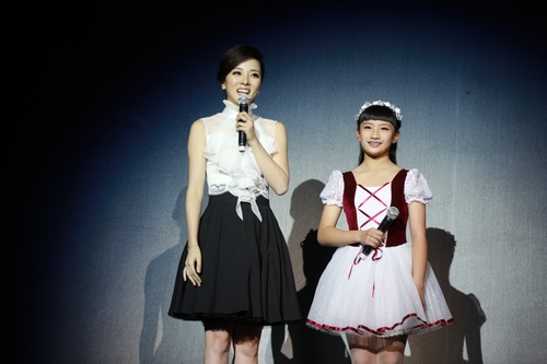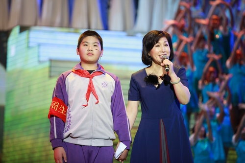 附小学生赵玲艺与中央电视台主持人李思思共同主持了晚会