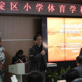 北京师范大学毛振明教授受邀为培训班做精彩报告,毛教授以幽默的语言、丰富的肢体动作为大家讲解体育课中“学懂的问题”和“学乐的问题”并对如何培养学生参加体育锻炼的兴趣进行了深入的分析。活动最后毛教授与在场老师进行互动,非常热情的解答老师们提出的问题。三个小时的培训后,校体育组老师带领毛教授和骨干教师们参观了附小校园,附小学校的校园文化建设给老师们留下了深刻的印象。