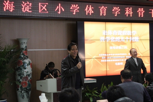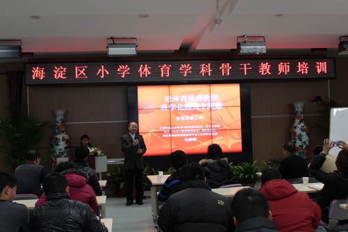 11月30日,海淀区体育教研组长培训班在我校举办,海淀区全部体育骨干教师参加了培训。此次培训受到海淀区体卫中心高度重视,马授良主任到场参加会议。