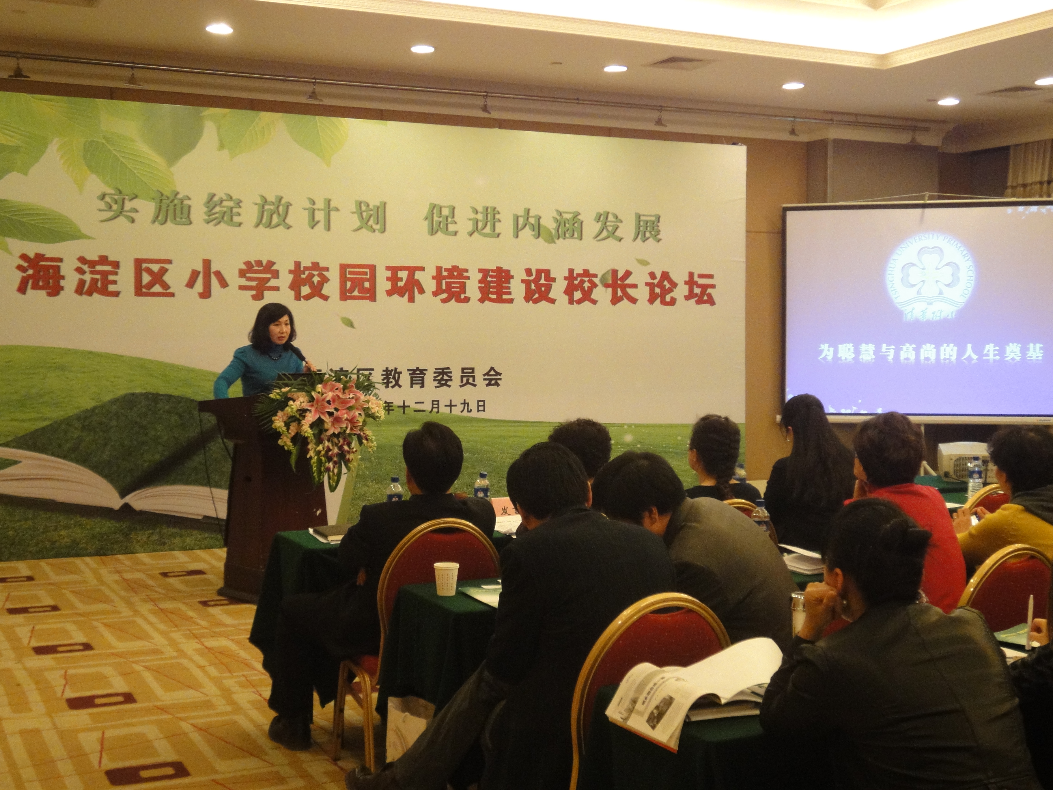 特别是,窦校长代表“校园环境建设最具品位的十所小学”在大会论坛上做了题为《栖居在我们的家园》的主题发言,介绍了清华附小校园的历史沿革、独特特色和文化品位,赢得了到场专家领导的一致肯定,以及与会者的阵阵掌声。