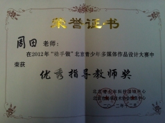 周田老师的荣誉证书