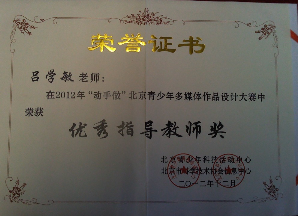 吕学敏老师的荣誉证书