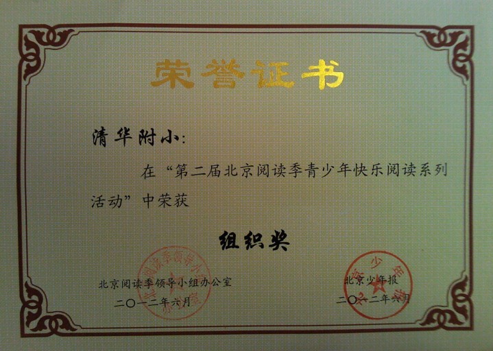 我校在“第二届北京阅读季青少年快乐阅读系列活动”中荣获组织奖