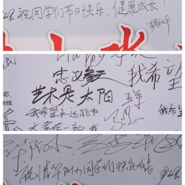 心愿墙上留下了学生们的心愿和老师对学生的祝福