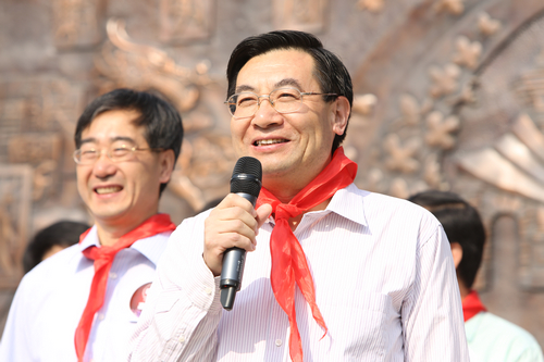 在少先队员的邀请下,清华党委书记胡和平发表了热情洋溢的节日祝福,并提出了殷切希望。作为一个“大朋友”,胡和平为附小的小朋友们送上了节日的祝福,他说,明天就是六一儿童节了,我代表学校向同学们致以节日的问候,祝大家学习进步,健康成长!胡和平说,今天戴上红领巾,我也仿佛回到了童年,看到同学们一张张幸福的笑脸,我也觉得特别的幸福。清华附小有着近百年的悠久历史,走出了许多优秀的、杰出的校友,学校非常关心同学们的成长,努力为大家创造好的条件。胡和平表示,同学们非常幸福,有一个美好的校园,有许多爱你们的老师,家长和全社会也都对你们充满了爱,希望同学们德智体美全面发展,将来成长为祖国的栋梁。