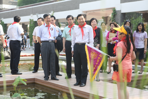 与同学们一起庆祝节日的领导还有北京市教委王军处长,海淀区政府教育督导室主任尹丽君以及来自海淀区教委和清华大学各个院系、企业的领导、嘉宾及家长代表。主题活动还表彰了“感动六一”的六颗星即:感恩星、健康星、校园文化建设星、环保星、光荣星、合作星。