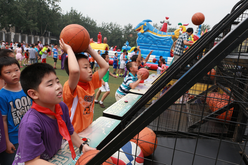 在整合校内资源的基础上,中年段的阳光儿童乐园游艺则有19套儿童游艺设施激光打靶、篮球机、充气城堡迷你城堡等,让中年段的同学们在游戏中尽情体验着数学与体育,数学与科技带来的启迪与欢乐。