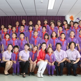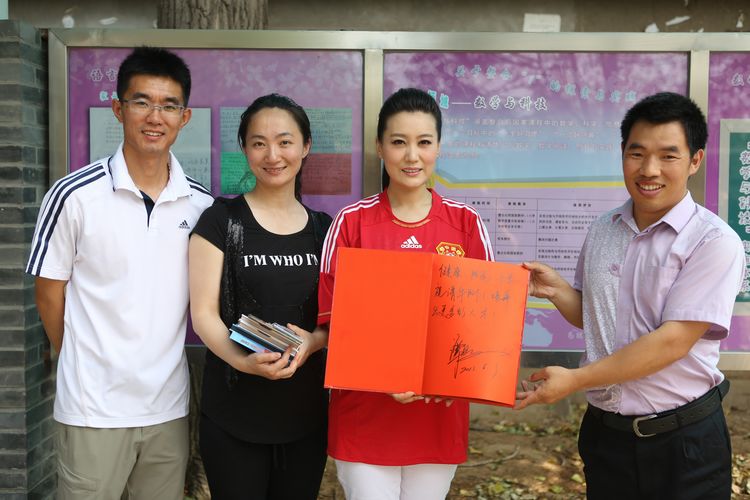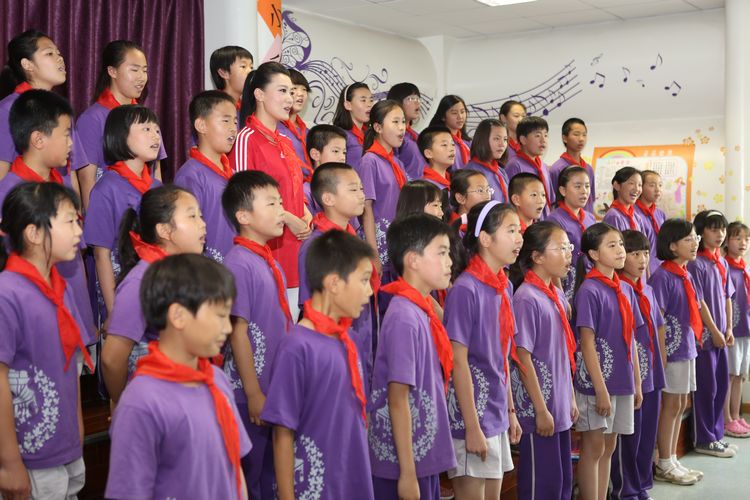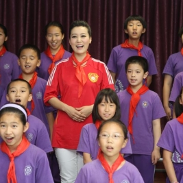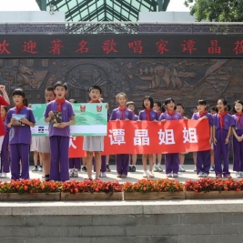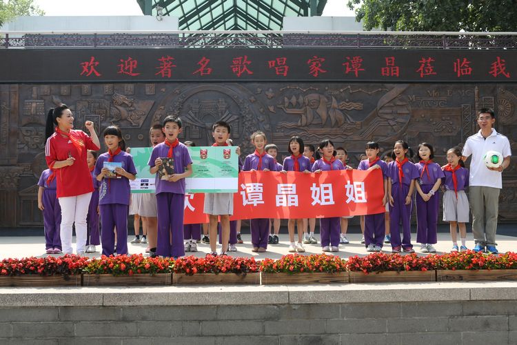 六一刚过,同学们还沉浸在欢乐之中,下午两点,谭晶如约来到我校,受到了同学们的热烈欢迎。少先队员代表为她献上了鲜艳的红领巾。随后,在同学们带领下,谭晶参观了校园,走进了学校图书馆,她对如此美丽的校园,良好的读书学习环境赞不绝口。在同学们的邀请下,谭晶来到了正在进行合唱练习的教室,并现场演唱了她的成名曲《在那东山顶上》。