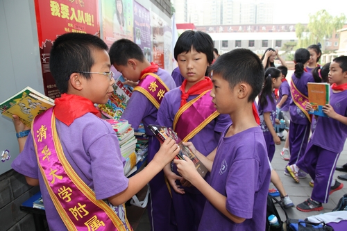 2013年6月17日,清华附小师生向广西田东县留守儿童爱心书捐赠仪式隆重举行。清华大学教育基金会副秘书长王丹老师、中央人民广播电台刘玉蕾老师、北京市红十字学生工作委员会李胜华副处长、海淀区红十字工作委员秘书长马翠与清华附小全体师生一起参加了图书捐赠仪式。