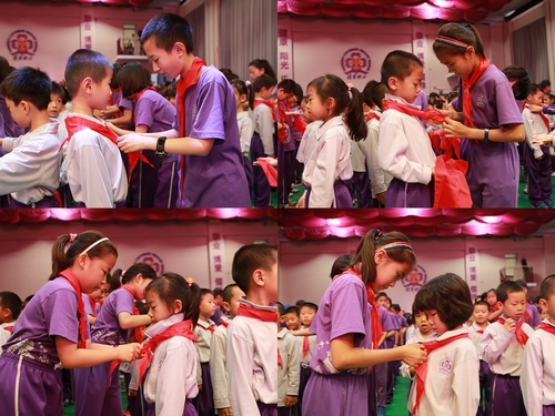 我校及我校中央商务区实验小学的家长代表近500人分别参加了今天的入队仪式。