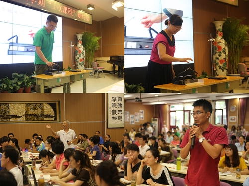 接着,教师们观摩了美国教师科技与艺术的整合课视频,美国教师巧妙的整合、体验式教学、学生积极地投入让教师们耳目一新,深受启发。