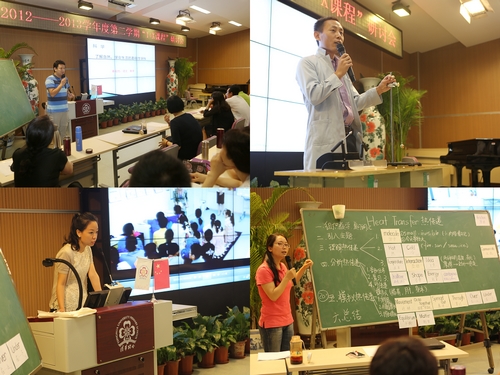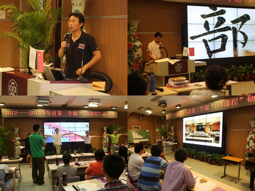“整合”是“1+X课程”的重要实现途径。研讨会第二阶段围绕“整合”进行了模拟课堂研讨,李强老师介绍了自己在“1+X课程”全国研讨会上的公开课“火山爆发”的整合思路。科技组和中段的老师也带来了以“平衡”为主题的科内整合与学科间整合课。老师们巧妙的设计引发了大家强烈的兴趣,大家讨论的热火朝天,场面活跃,台上台下打成一片。