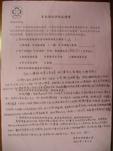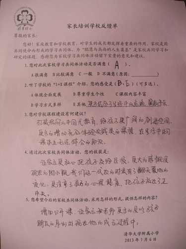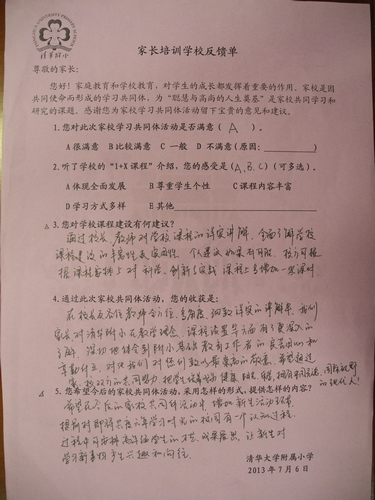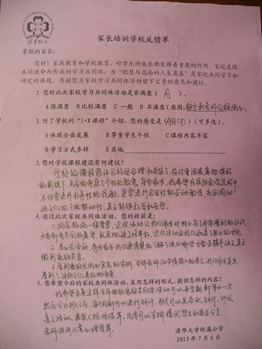 2013年新生家长培训学校反馈单统计数据(客观题)