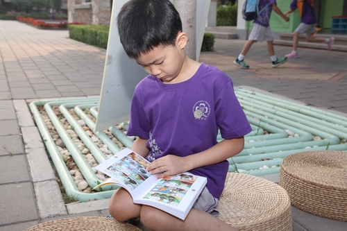早上7点刚过,在老师的指导下,三位家长志愿者就把盛满新书的书车推到启程楼和知行楼前,一边整理图书,一边招呼来到的学生放好书包前来读书。学生们欣喜地跑过来,在“丁香阅读记录单”上写下自己的班级、姓名之后,便选了自己喜欢的图书,坐在旁边津津有味地看了起来。路过的老师、同学都露出了赞美的微笑。