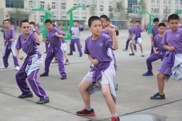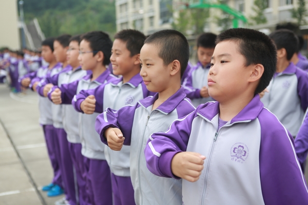 今天下午训练重点男生是军体操演练和女生分列式演练。训练场上微风拂动,雨后的天气分外凉爽。伴随着教官的一声令下,六年级的男生已经列队就位。声声呐喊,气壮山河,响彻云霄,将男生与生俱来的那种阳刚之气在此刻发挥的淋漓尽致。