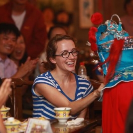 随后来到老舍茶馆。喝上几碗大碗茶,再听讲解员讲述茶馆的文化与历史别有一番意味。接着教师们在优雅的环境中品茶,互相交流体会,并感受茶馆浓郁的文化氛围。随后,我校各年段老师准备的有关老舍、有关北京文化的节目,与老舍茶馆精心为我校准备的节目将活动推向了高潮。