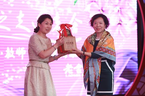老舍茶馆董事长尹智君女士出席了庆祝活动,为附小老师带来了节日的问候,与我校互赠纪念品,并希望与我校在茶文化、北京文化交流等方面建立合作。