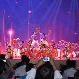 舞蹈《丁香鼓韵》作为节目的开场,孩子们帅气、洒脱的舞姿点燃了全场的气氛,赢得台下阵阵掌声。
