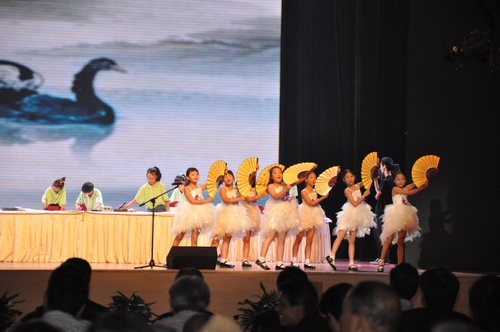 9月12日,我校舞蹈团、合唱团的80名同学参加了由中国书法家协会、中央数字电视书画频道举办的首届“中国电视书法大赛”颁奖晚会节目录制。中国书法家协会主席张海、分党组书记赵长青均出席节目现场。我校艺术团的同学们用自己的舞姿、歌声引来大家的赞美,体现了我校学生的健康、阳光、乐学。