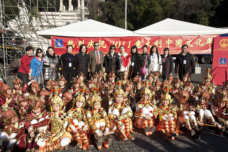 中华人民共和国驻意大利共和国大使馆丁伟大使亲自会见我校窦桂梅校长,授予我校少年民族吹打乐团荣誉证书并设宴款待全团师生。