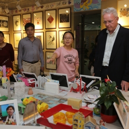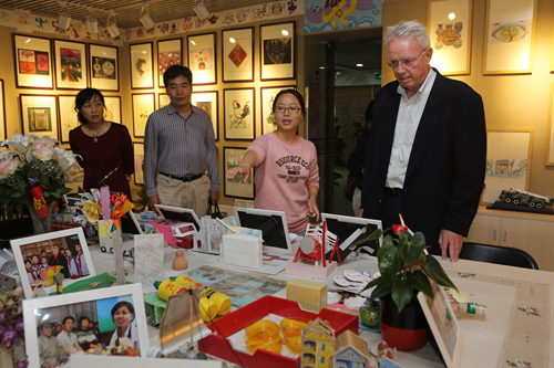 在我校校长窦桂梅的陪同下,威廉F.派纳首先参观了我校校园及正在下午进行的X课程课堂。他对我校的校园文化建设惊讶不已,他指出,我校将历史和文化很好结合,给老师和学生提供了很好的发展机会;到处都是孩子的作品,体现了孩子的创造力,培养了孩子的创新能力。