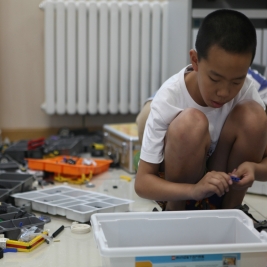 同学们在暑假期间不仅要在家中完成老师布置的暑假作业,同时还要到附小参加为期2周的集中训练。这次的WRO奥林匹克机器人竞赛与同学们以往参加的机器人竞赛不同,在这次为时3小时的竞赛过程中,参赛队员是不能与教练接触的。从比赛开始,同学们首先要将机器人进行独立的组装,完成复杂的组装任务后,要进入指定的地点进行机器人的场地测试。