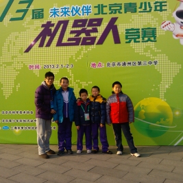 2013年2月1日—2月3日,来自北京市16个区县及中国儿童中心、北京青少年科技馆等180支队伍,参加在通州三中举办的“第十三届未来伙伴北京青少年机器人竞赛”活动。我校学生左思清、何沛豪、严顺其、宁厚然四名同学在VEX工程挑战赛项目中力拔头筹,以6胜2负的好成绩获得小学组一等奖殊荣。